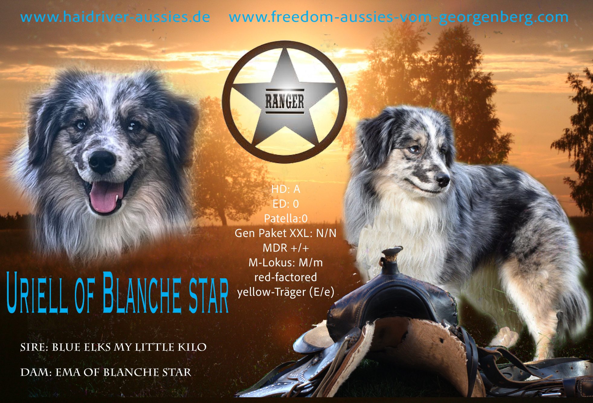 Ranger ein Mini Aussie mit seinem ganz eigenen Charme. Direkt aus Tschechien gekommen, hat er eines sofort bewiesen: Man kann entspannt durchs Leben gehen – und dabei trotzdem Herzen im Sturm erobern.